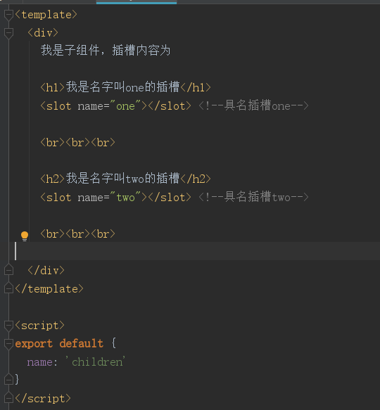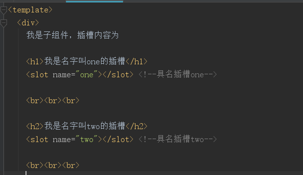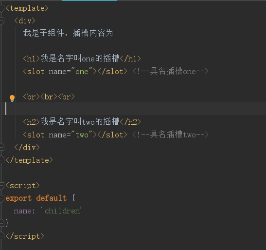 子组件定义两个具名插槽,定义方式: name = '名称'
