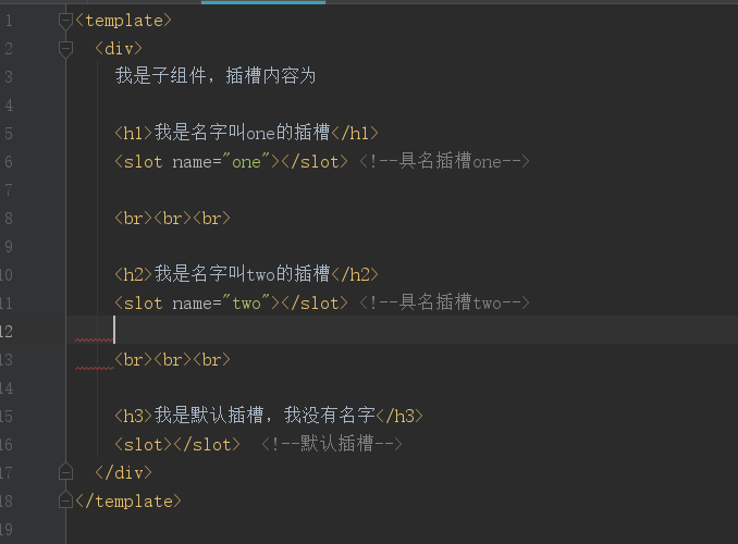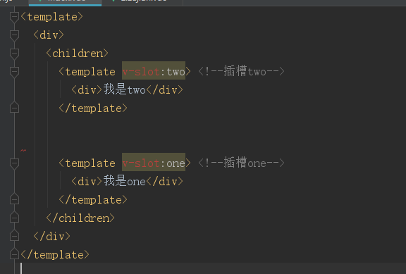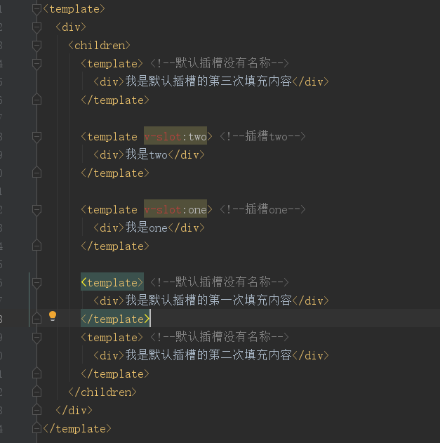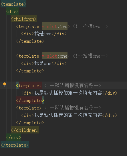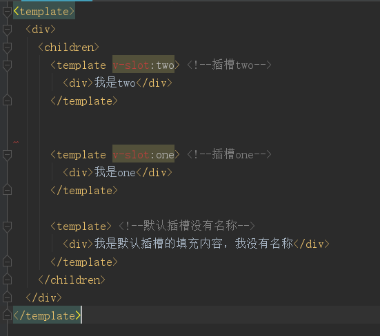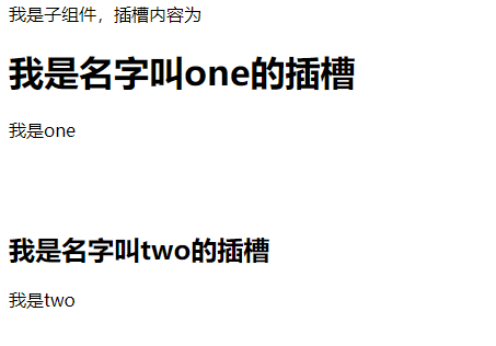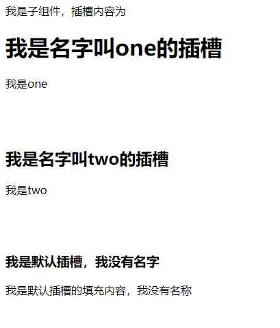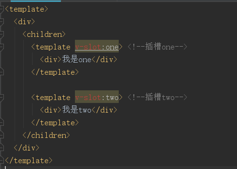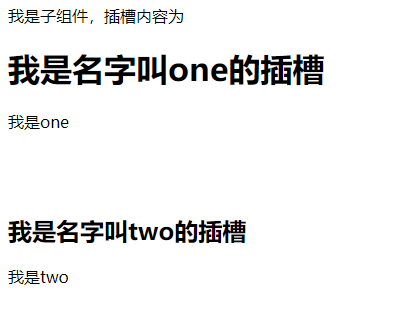 子组件定义两个具名插槽 one two 及一个默认插槽