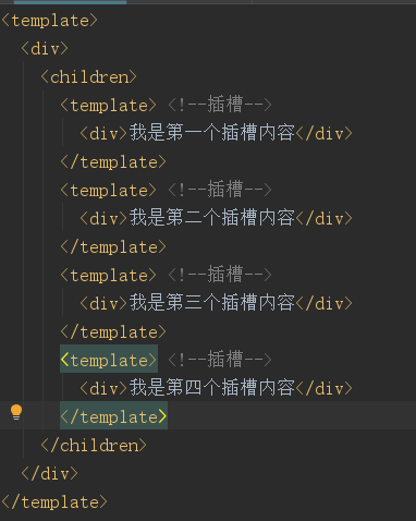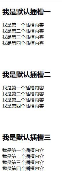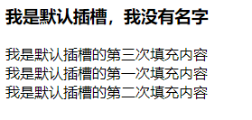 由此可得当子组件有多个默认插槽,而父组件所有指定到默认插槽的填充内容,将会全部填充到子组件的每个默认插槽中