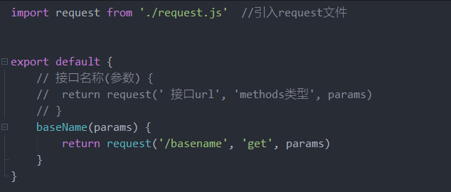 export default(url, method, params) => { // 传参: 接口url, method类型, params参数