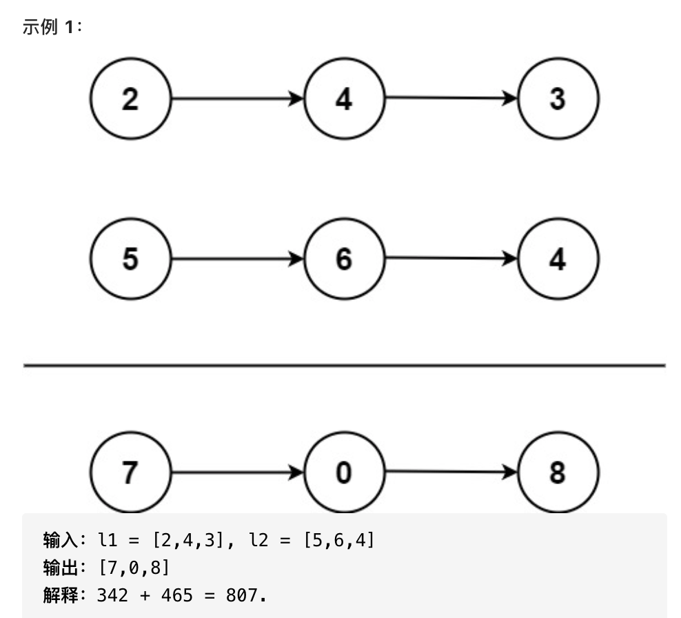 /** * Definition for singly-linked list. * struct ListNode { * int val; * ListNode *next; * ListNode() : val(0), next(nullptr) {} * ListNode(int x) : val(x), next(nullptr) {} * ListNode(int x, ListNode *next) : val(x), next(next) {} * }; */ class Solution { public: ListNode* addTwoNumbers(ListNode* l1, ListNode* l2) { int cur = 0; int res = 0; ListNode* H = new ListNode(); ListNode* L = H; int temp = 0; while(l1||l2){ // 避免两个链表不一样长的情况 if(!l1) temp = l2->val; else if(!l2) temp = l1->val; else temp = l1->val+l2->val; cur = (temp + res)%10; // 求当前位 res = (temp+res)/10; // 求进位 ListNode* p = new ListNode(cur); H->next = p; H = H->next; if(l1) l1 = l1->next; if(l2) l2 = l2->next; } if(res>0) H->next = new ListNode(res); // 如果最后一位进位大于0,则添加 return L->next; } };