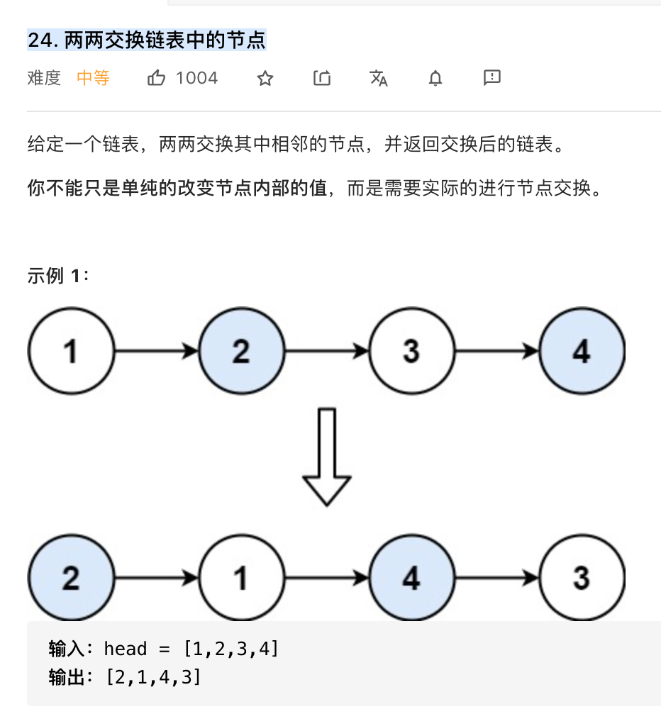 leetcode-华为专题-24. 两两交换链表中的节点