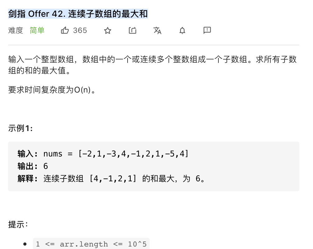 leetcode-华为专题-剑指 Offer 42. 连续子数组的最大和
