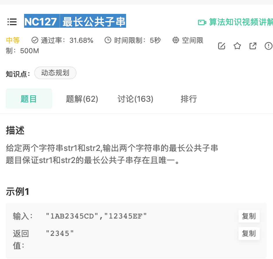 NC127 最长公共子串