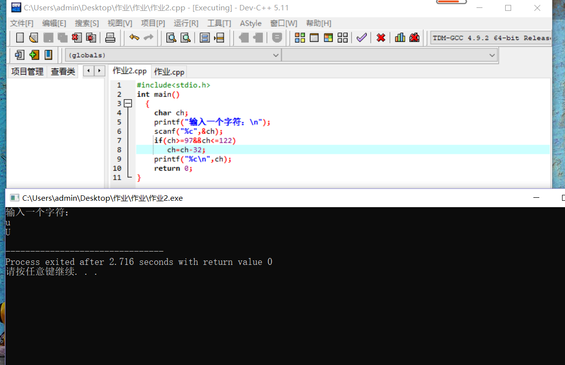 printf("输入一个字符:\n");
