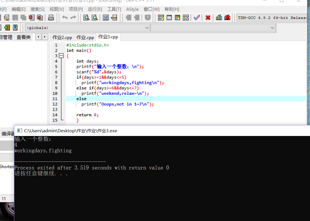 printf("workingdays,fighting\n");