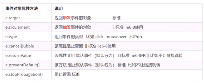 5. 事件对象也有兼容性问题 ie678 通过 window.event 兼容性的写法 e = e || window.event;