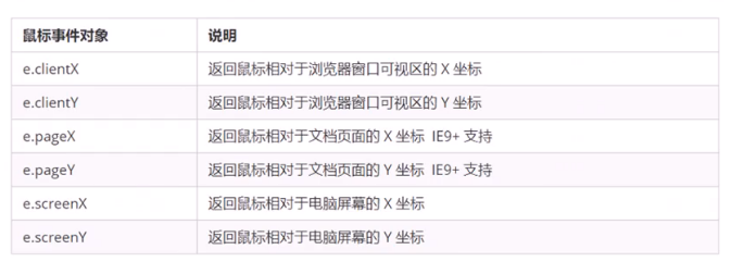 3. 事件对象 是 我们事件的一系列相关数据的集合 跟事件相关的 比如鼠标点击里面就包含了鼠标的相关信息,鼠标坐标啊,如果是键盘事件里面就包含的键盘事件的信息 比如 判断用户按下了那个键