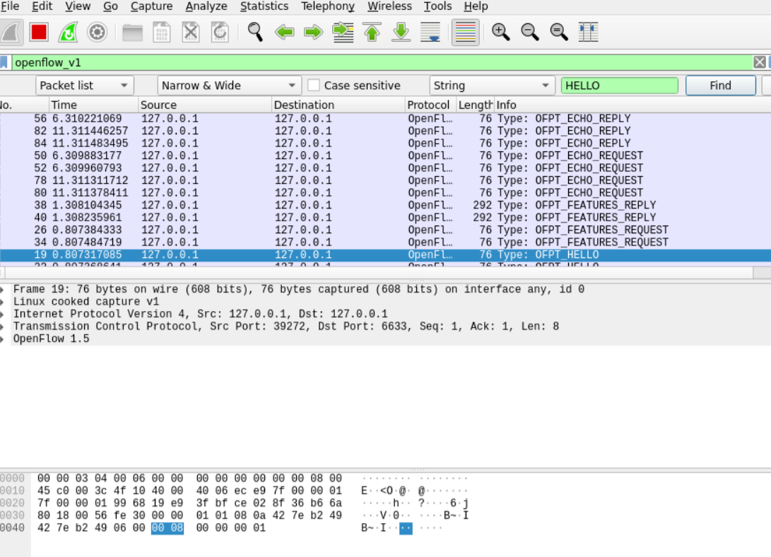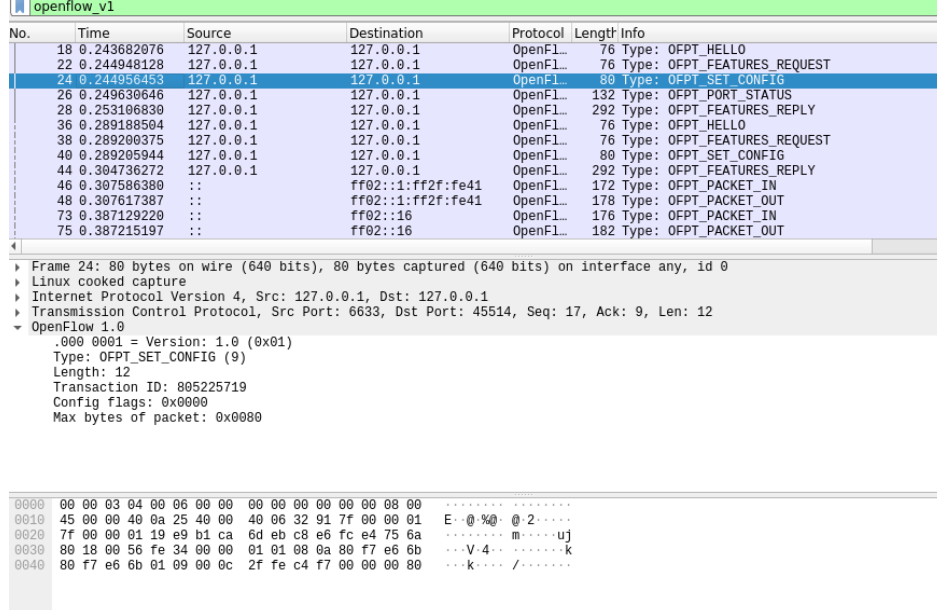 3.回答问题:交换机与控制器建立通信时是使用TCP协议还是UDP协议?