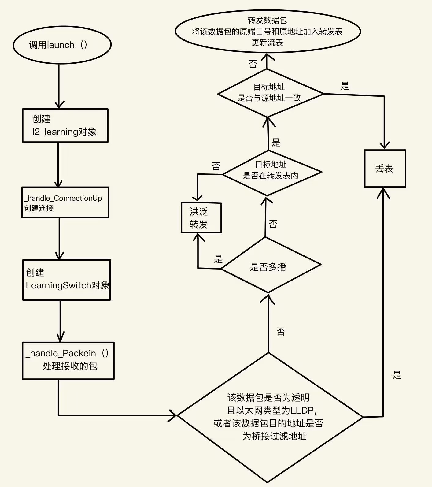 阅读L2_learning模块代码,画出程序流程图,使用 tcpdump 验证Switch模块。