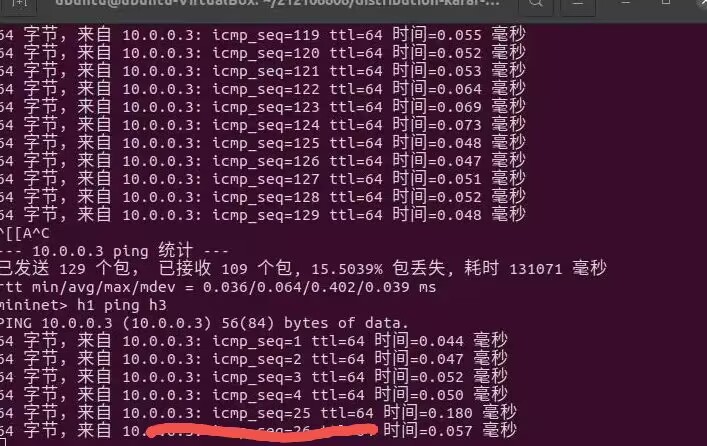 (3) 下发硬超时流表,实现拓扑内主机h1和h3网络中断20s。