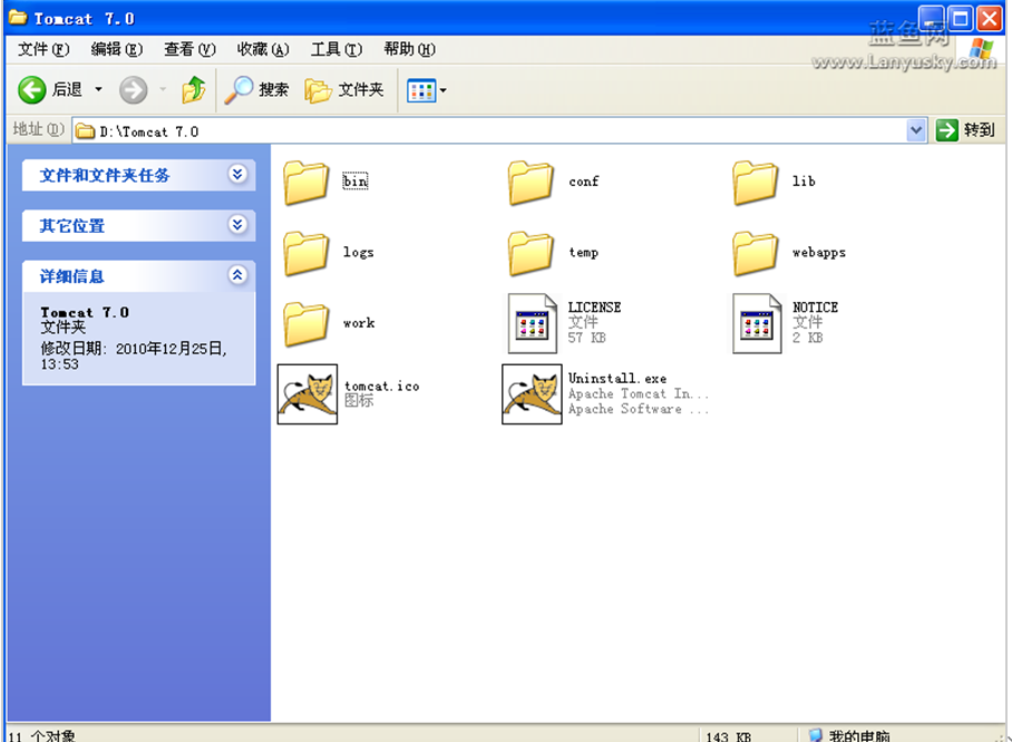 剩下的基本就是默认的,也没什么特殊的,在这里我在说明一下Tomcat安装完成后的目录有