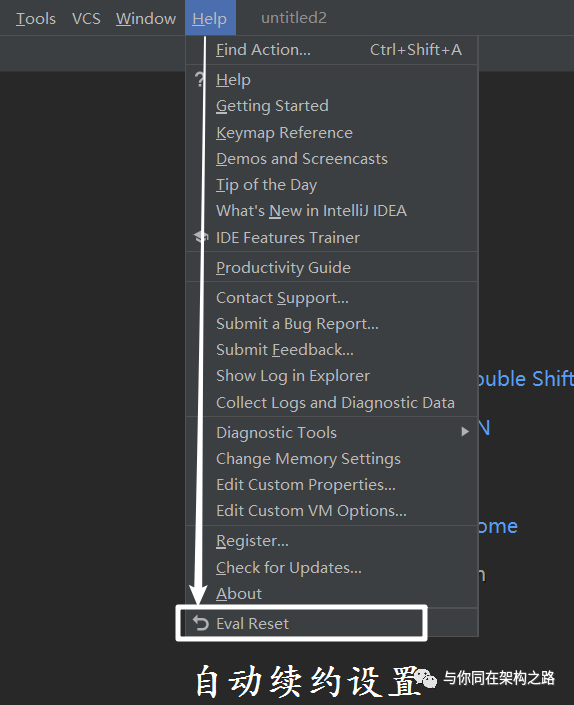 3.然后点击菜单:Help 会发现多了一个 Eval Reset按钮