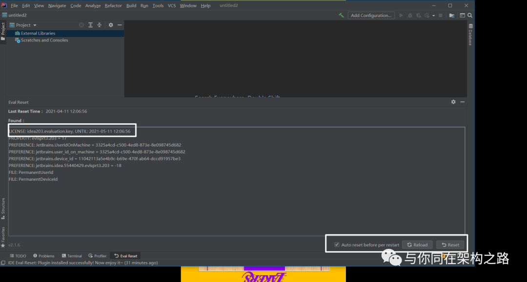 5.勾选Auto reset before per restart 然后点击Reload 再次点击Reset 这样IDEA就成功"激活"啦!