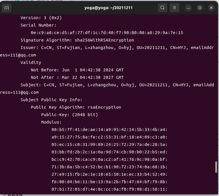 yoga@yoga:~$ openssl x509 -in rootCA.pem -text -noout