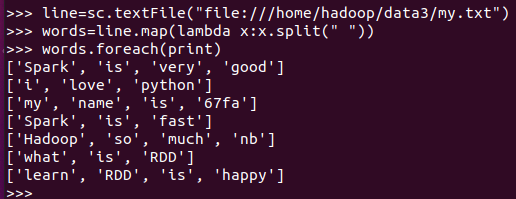 输入列表、字符串、生成数组 (调用SparkContext的parallelize方法)