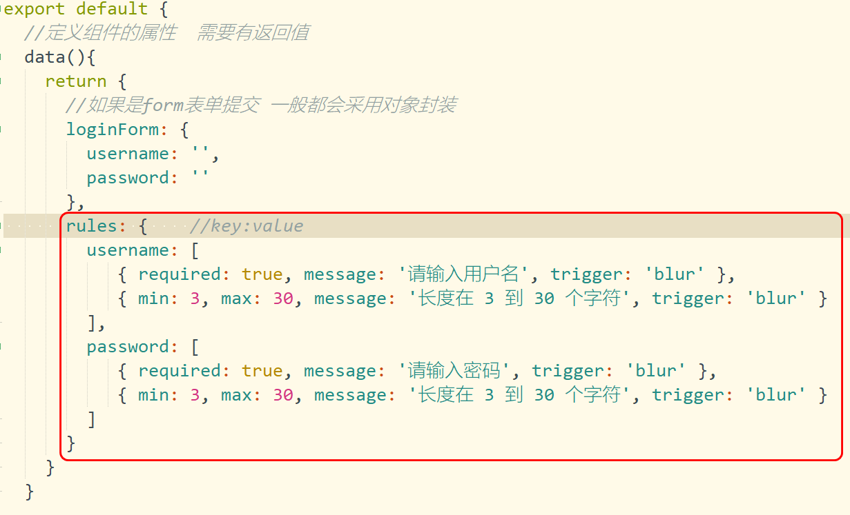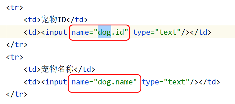 要求: 对象的属性必须与name属性一致.