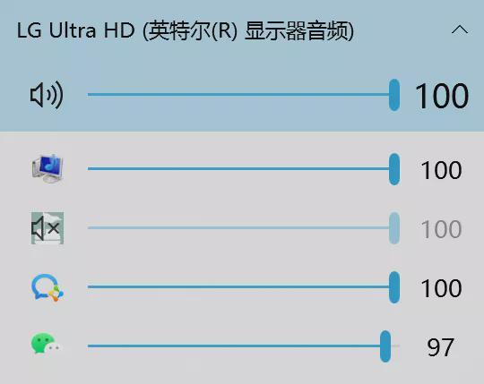 左键点击图标,会直接弹出每个程序的播放音量,可以直接拖动设置音量大小;