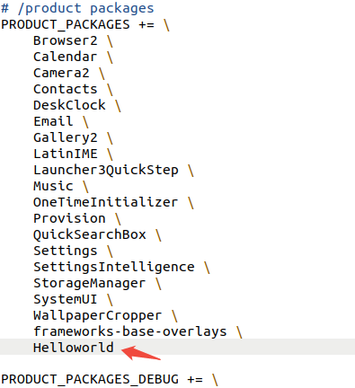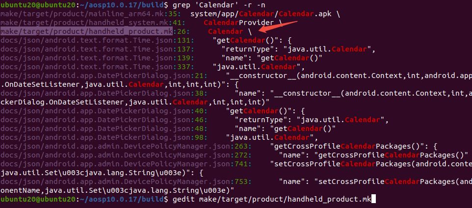 3. 往product packages添加Helloworld,告知系统打包我们的apk到系统里面去,这里以Calendar为例搜索定位到到配置模仿编写
