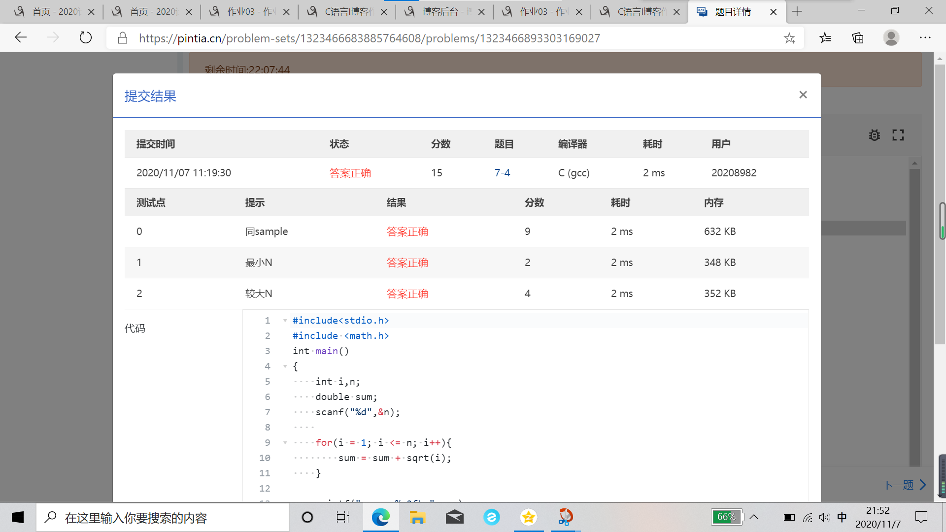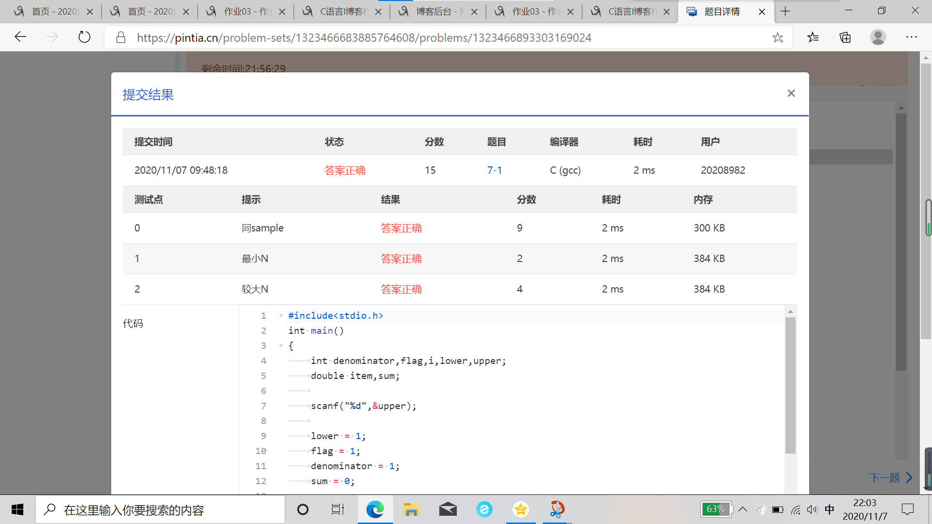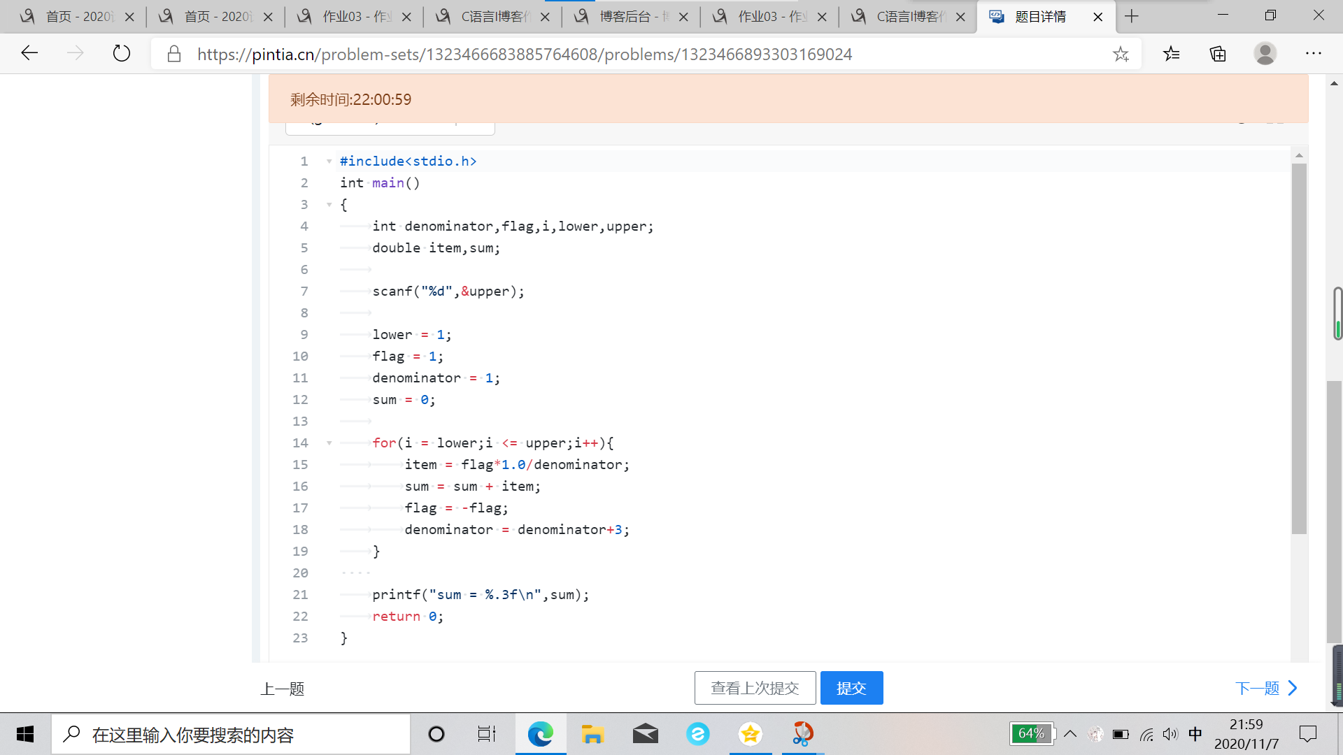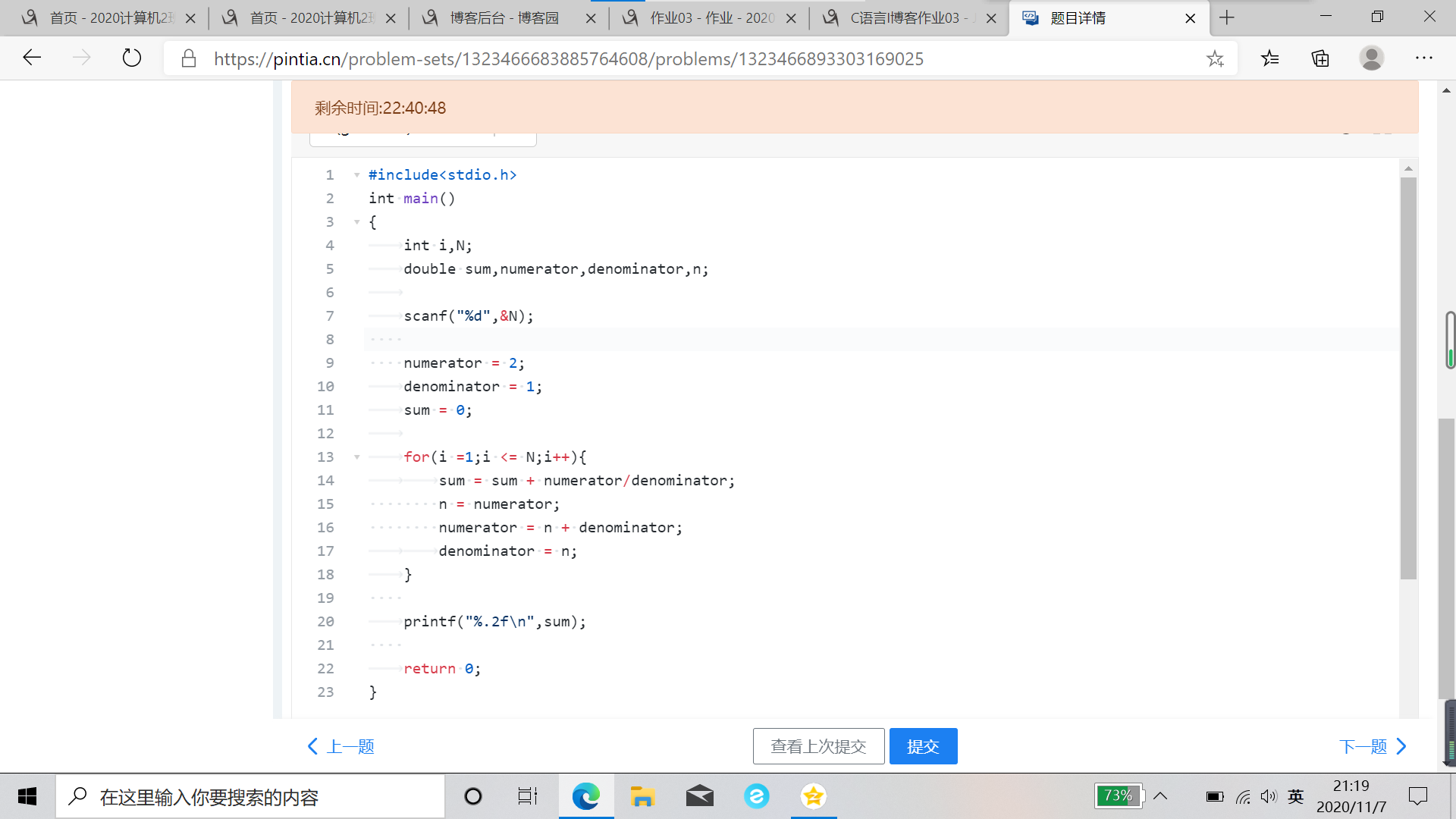 ·数据表达:用了i,N,sum,numerator,denominator,n这些变量,通过定义和赋值得来,类型是整数型