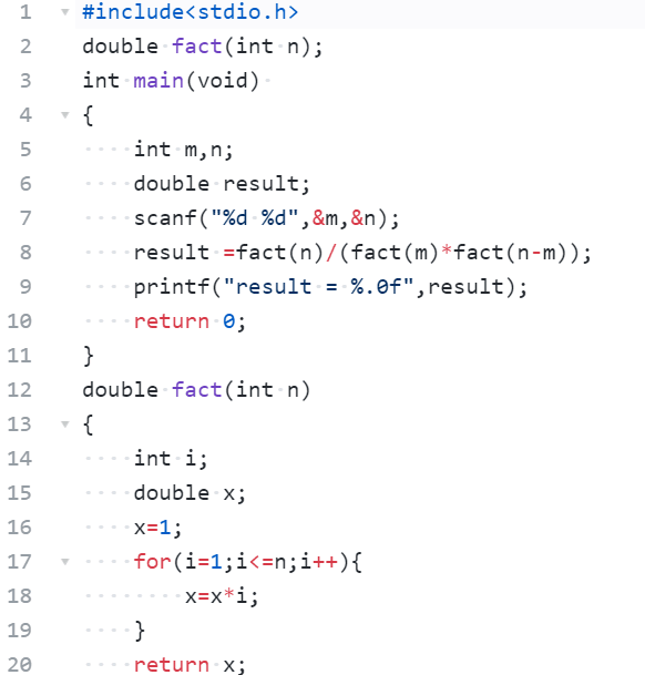 数据处理:fact函数和main函数,用了循环结构