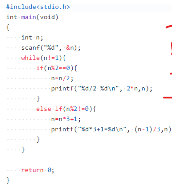 q1:因为运算至结果为1,因此循环应满足条件不等于1,一开始我忽略了这一条件
