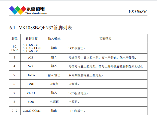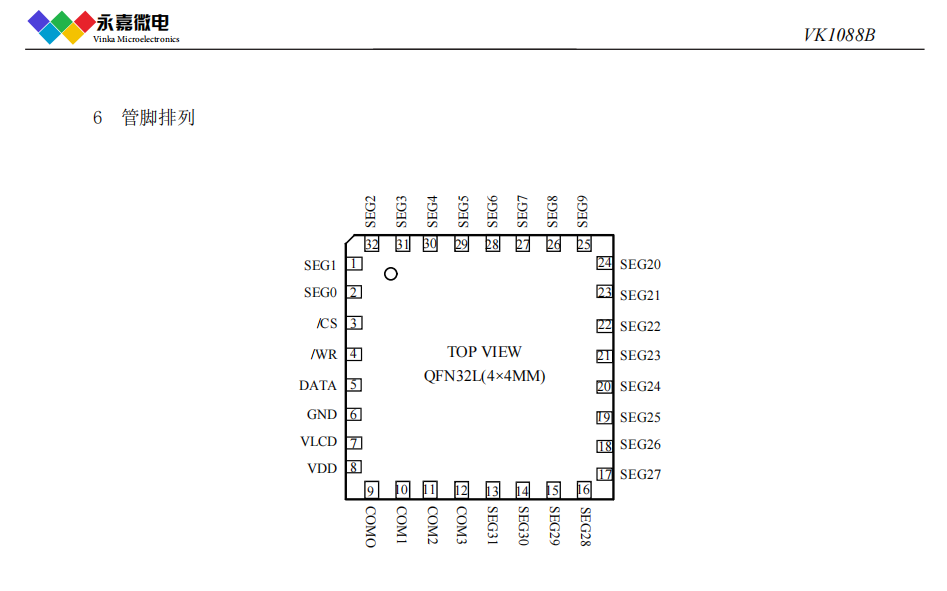 VK1088B采用QFN32L封装形式/超小封装液晶驱动LCD显示芯片
