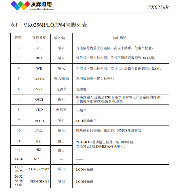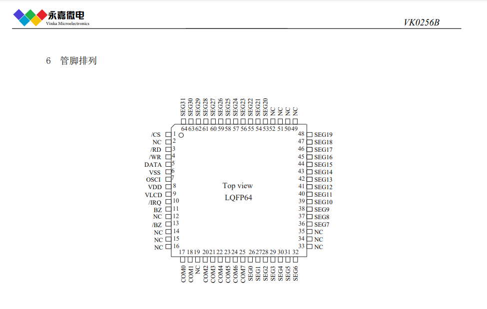 VK0256B LQFP64 最大支持32×8的LCD屏/液晶段码显示屏驱动器