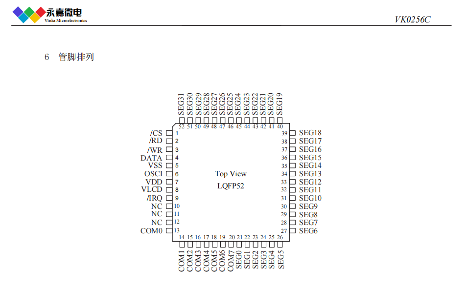 医用仪器/瓦斯表LCD驱动/段码液晶显示驱动芯片--VK0256C LQFP52