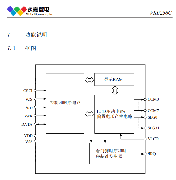 VK0256C是一个点阵式存储映射的LCD驱动器,可支持最大256点(32EGx8COM)的LCD 屏。单片机可通过3/4线串行接口配置显示参数和发送显示数据,也可通过指令进入省电模式。LJQ4229