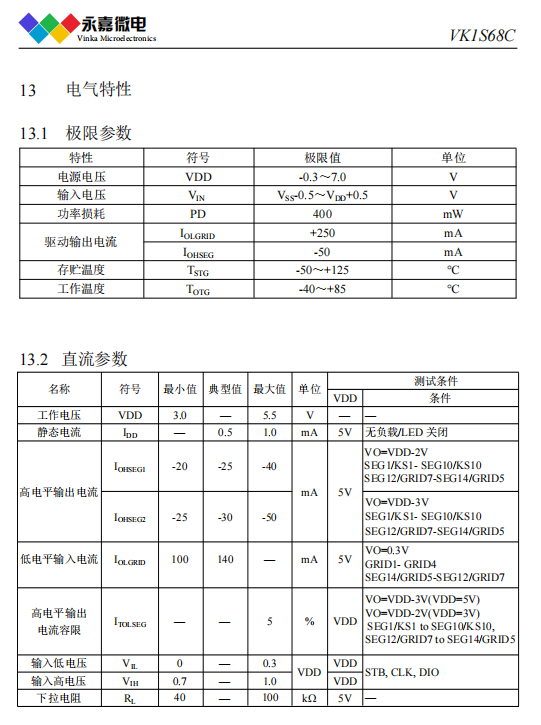 超抗干扰数显驱动/LED数码管驱动芯片-8级整体亮度可调VK1S68C SSOP24