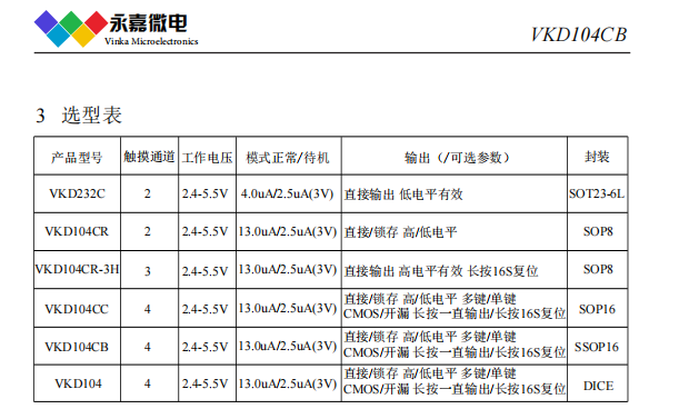 低功耗4路触摸4键触控检测芯片VKD104CB SSOP16适用于电池供电的电子产品