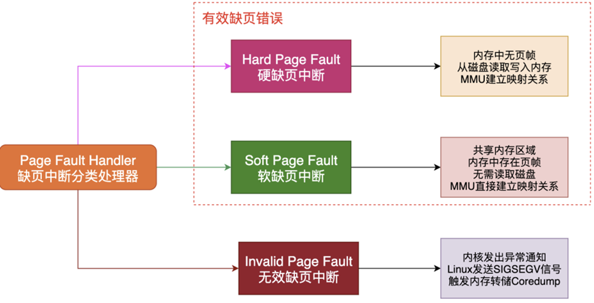 在内核的Page Fault Handler中会根据缺页中断的不同类型进行不同处理。