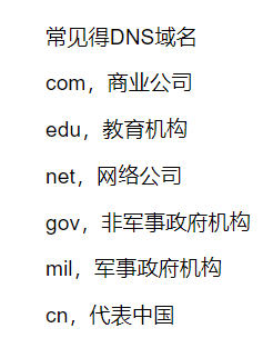 一级域名:.com .org .cn .edu等。顶级域名一般有含义,如学校、国家、政府机构等。