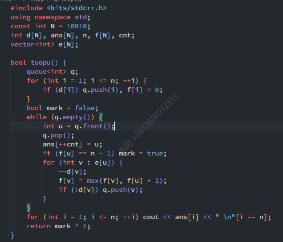 性质:层数相同的节点在拓扑序中可以随意交换,且层数大的一定在层数小的后面
