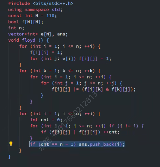 跑Floyd,传递闭包,如果所有点与这个点的关系是确定的,有关系,那么ans计数