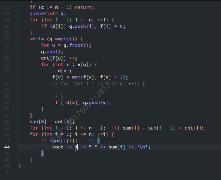 更好的办法:如果有一个点的层数为n-1,那么拓扑序一定是唯一的