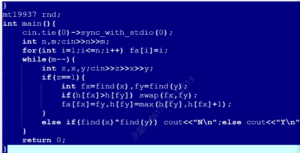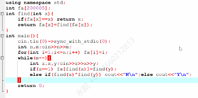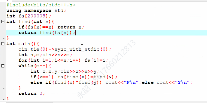 初始赋值:把所有fa[i]=i(f[i]:i的父亲)