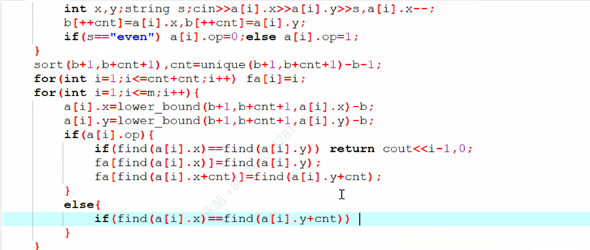 当要把两个点合并到同一集合里时,要检查a正点与b反点不联通
