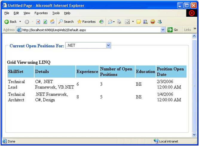 We can have conditions in queries. For example, if I want to list all open positions for the selected .net technology which requires more than 3 years of experience then I can change the query like this