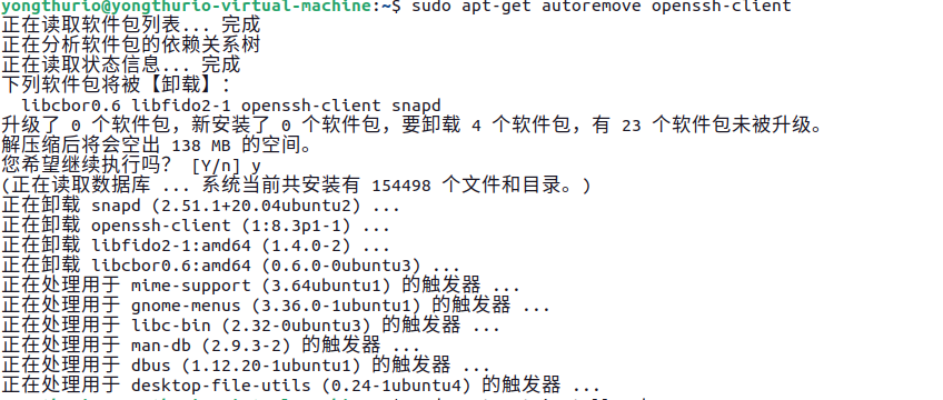 因为软件自己安装了ssh-client,突发奇想,能不能把它卸载了重新装ssh呢?