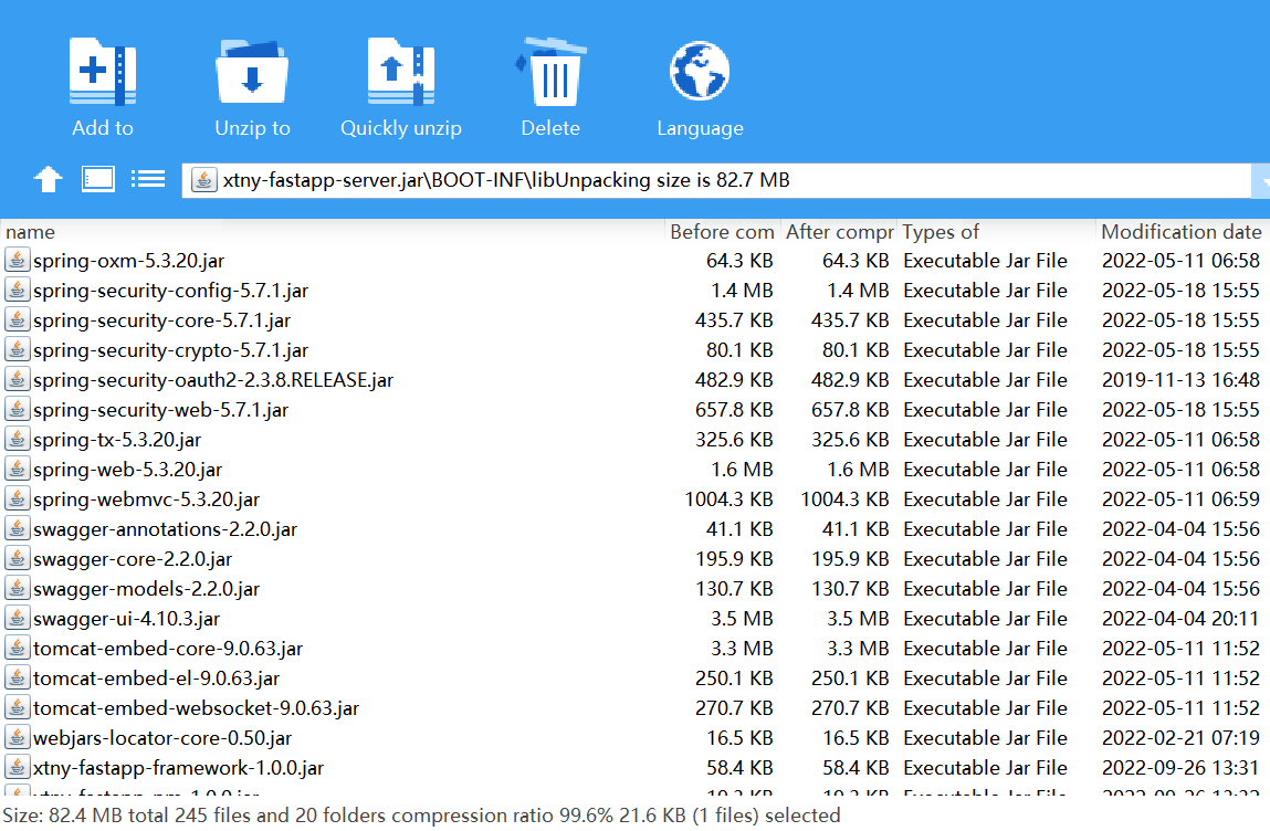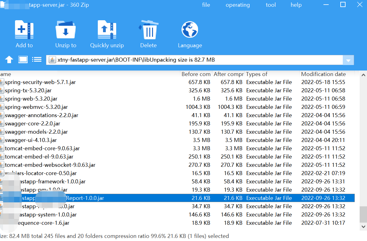 发现果然不包含刚写的服务的jar包