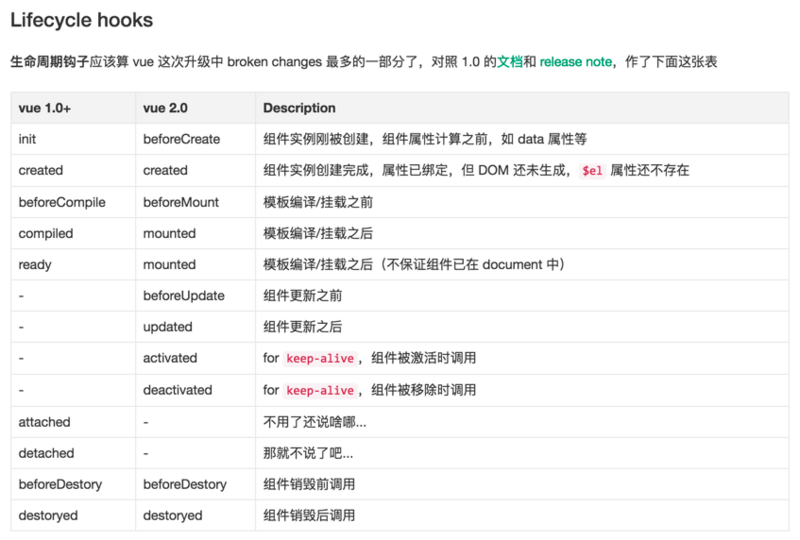 上面已经能够清晰的看到vue2.0都包含了哪些生命周期的钩子函数~~