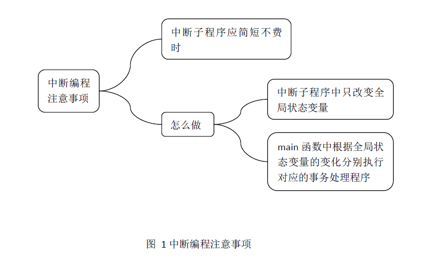 具体的事务处理语句不应放在中断函数里面,中断子程序中的语句应当简洁明了,不应当有太多的语句。假如你在编写中断子程序的时候像在main函数中那样写一大串处理具体事务的指令的话,会在此中断中占用太多的时间,假如当有其他低优先级的中断信号来临的时候也可能导致中断丢失,发生程序的逻辑错误。所以,在中断子程序中的指令语句应当做到最短。