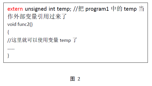 在keil同一个工程下的另一C文件program2.c就可以这样引用在program1.c中定义的变量temp: