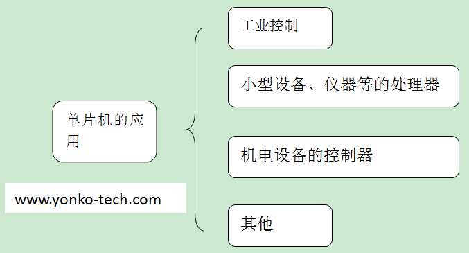 上面简单地介绍了单片机的功能,通过这些功能可以看出,单片机可以实现绝大部分工业控制、机电设备、仪器仪表等所需要的功能。那么至少可以有这么多的应用: