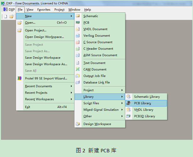 新建:打开DXP软件,依次点击file→new→library→PCB library。