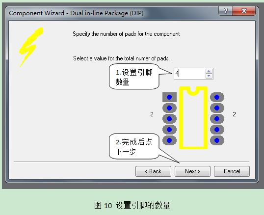 设置封装形式:本步骤选择元件是哪一种封装,本例选择DIP,就是插针式引脚,当然也有其他形式,根据需要选择。完成后点next。