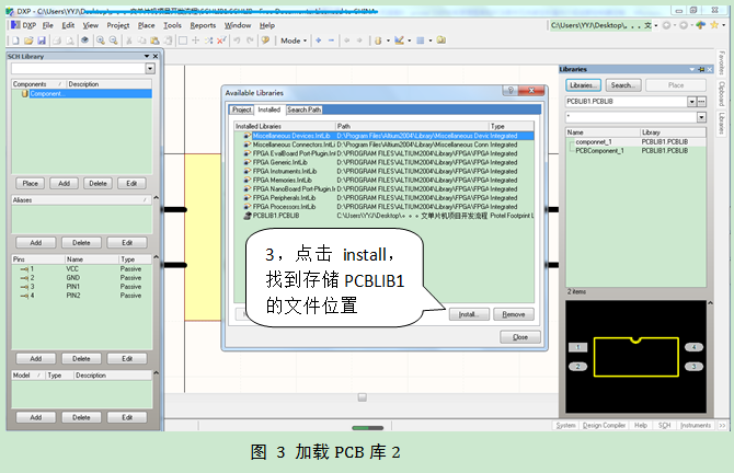 ●加载对应的PCB库。即在打开的原理图库文件中加载对应的PCB库,如果已经加载这一步可忽略。