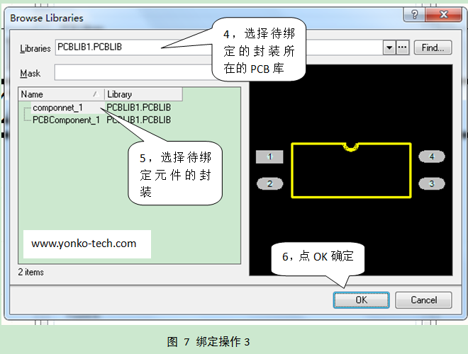 那么,将原理图库中的元件和与之对应的PCB库元件进行绑定,是一个必需的操作,以使它们可以相互对应。